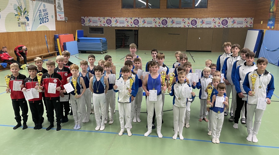Leider hatten sich die Mannschaften der Älteren im Laufe des Jahres zurückgezogen, so dass nur die Jugendklassen an den Start gingen und um Pokale und Medaillen kämpften. In der jüngsten Altersklasse (AK 9 u.j.) startete nur eine Mannschaft an allen drei Wettkampftagen. So steigerten sich die Turner der Coblenzer Turngesellschaft von Wettkampf zu Wettkampf um 12 bzw. noch einmal um 2 Punkte.